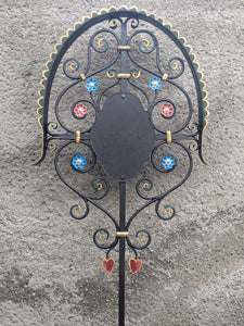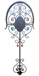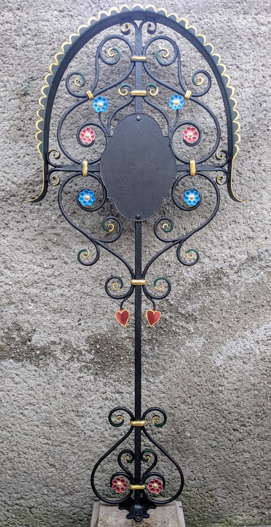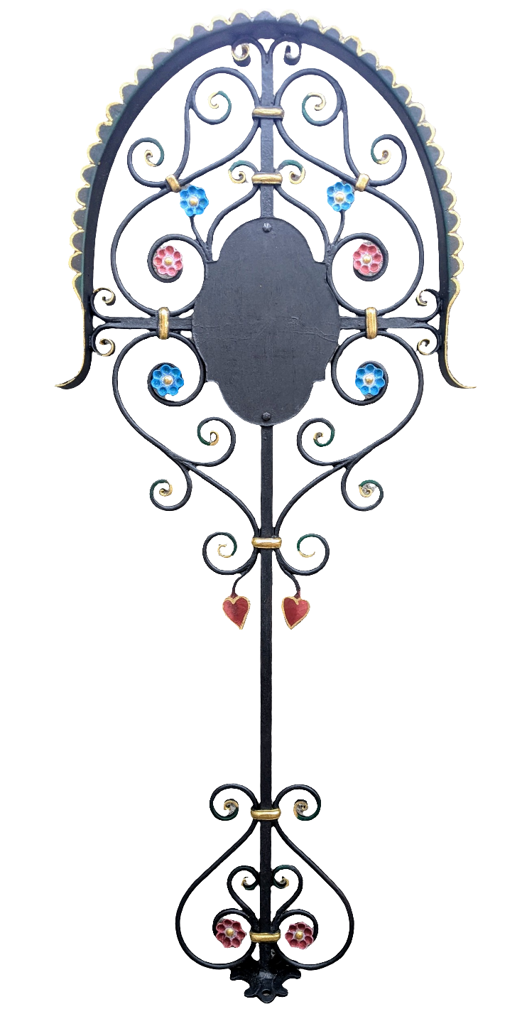 Grabkreuz St. Anna bemalt mit Bodenplatte zur Montage auf einem Steinsockel. Höhe 125cm Breite 55cm.Dieses wunderschöne Grabkreuz ist Handgeschmiedet und verzinkt. Das Grabkreuz St. Anna ist liebevoll von Hand bemalt und mit echtem Blattgold vergoldet .